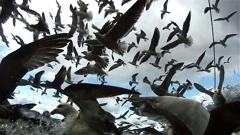 Leviathan (2012) es un documental de campo en el que, al carecer de diálogos, el registro sonoro ambiental se vuelve un elemento fundamental de todo el material. Literalmente inmersivo y diferente a cualquier cosa que se haya visto antes, es una experiencia puramente visceral y cinematográfica, que transporta al espectador a lo más profundo de la industria de la pesca comercial. La película captura el mundo crudo y áspero de los pescadores, en una excursión nocturna a bordo de un buque pesquero que navega por las aguas negras de la costa de New Bedford, Massachusetts, el puerto pesquero más grande de EEUU, situado en la misma región que inspiró a Herman Melville para su legendaria novela Moby Dick (1851). Y es de dicho libro que surge el título de la película, ya que Melville se refiere a la gran ballena con el término bíblico para un monstruo marino: Leviatán.